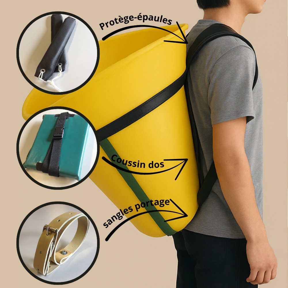 Améliorez votre confort pendant les vendanges avec ce kit complet spécialement conçu pour les porteurs de hotte. Les protège-épaules réduisent les frottements et les douleurs liées au poids de la hotte. Le coussin dorsal assure une protection efficace du dos en répartissant mieux la charge. Les sangles de portage renforcent la stabilité de l’ensemble pour un port plus sûr et plus équilibré.