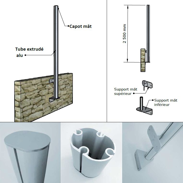 Mât de fixation sur murette